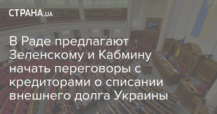 В Верховную Раду внесли проект обращения к президенту Украины Владимиру Зеленскому и Кабмину с просьбой начать с зарубежными партнерами-кредиторами переговоры о списании государственного и гарантированного государством внешнего долга Украины.