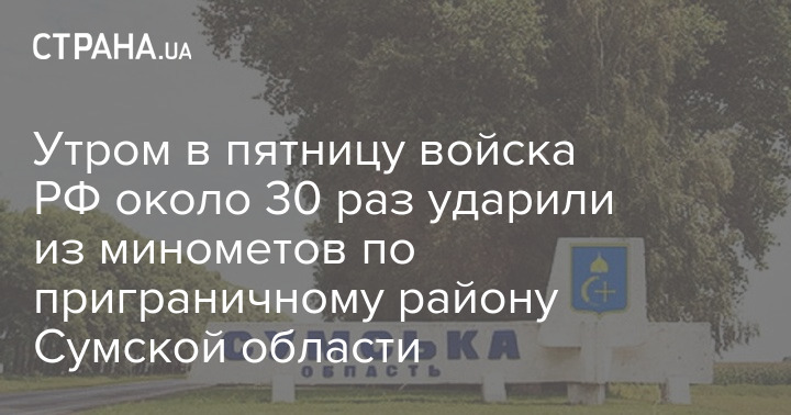 В Сумской области заявили об обстреле приграничного района российскими войсками. Минометный обстрел Хотинской громады начался около 05:00, всего было 30 "прилетов".
