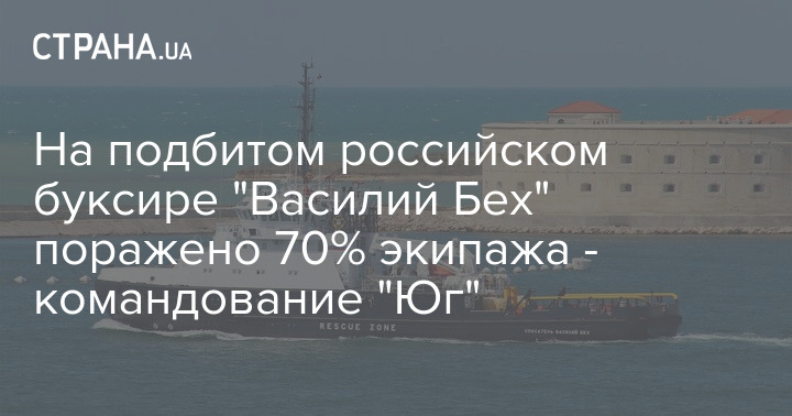 В результате удара ВСУ ракетой Harpoon по российскому буксиру "Василий Бех" было поражено 70% экипажа. Судьба остальных - неизвестна.