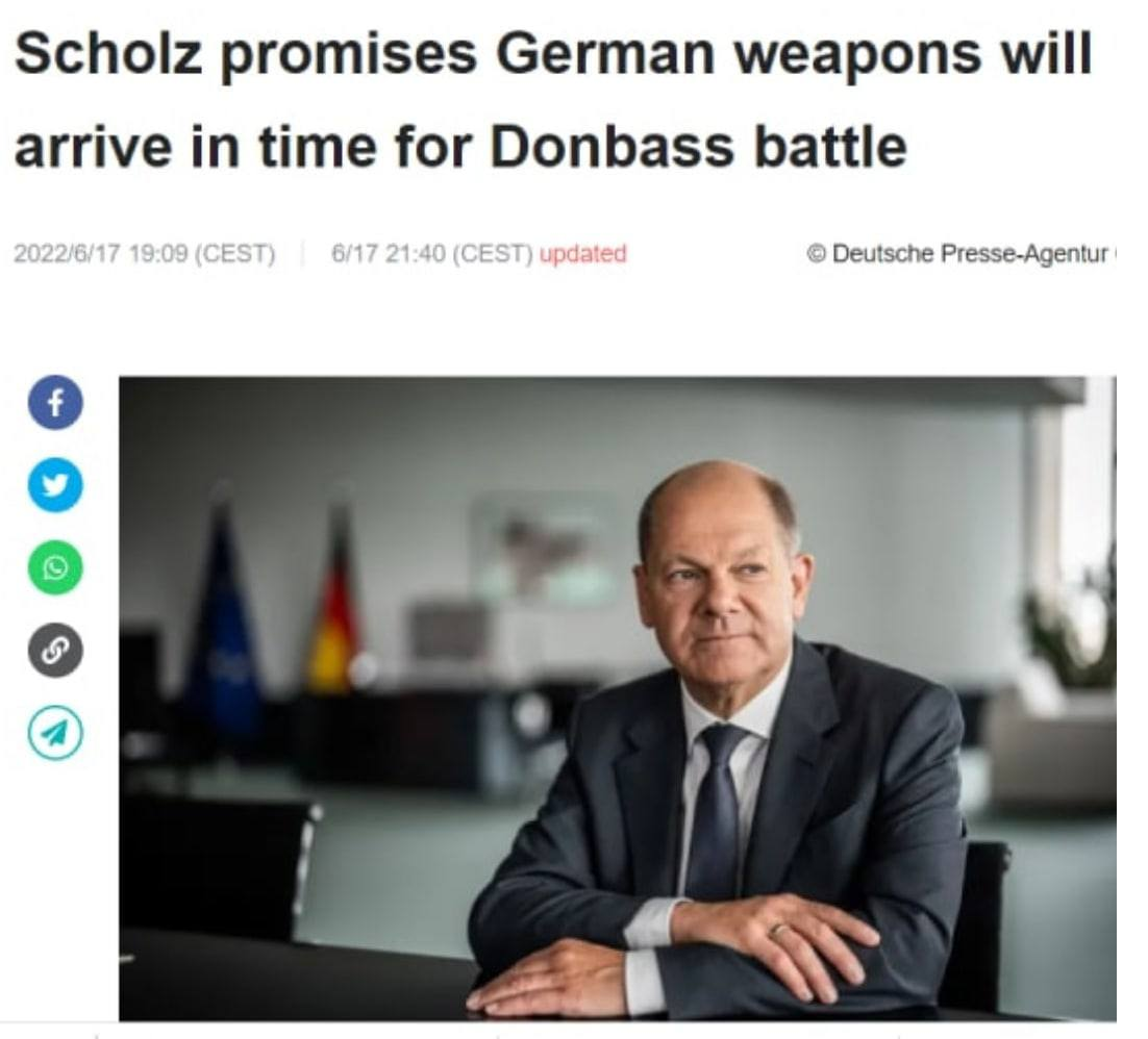 Немецкое оружие прибудет в Украину "вовремя", пообещал канцлер Германии Олаф Шольц в интервью DPA.