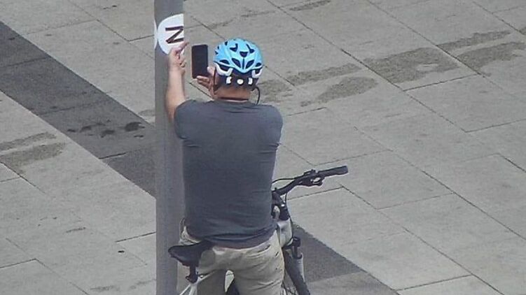 Военно-морской атташе США во время велопрогулки по Москве показал средний палец букве "Z" на столбе. Фото