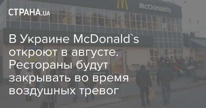 В Украине McDonald's откроют в августе. Рестораны будут закрывать во время воздушных тревог