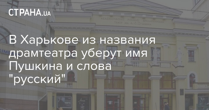 Харьковский русский драмтеатр больше не будет носить имя Пушкина и не будет называться русским. Теперь его переименуют в просто "Харьковский академический драматический театр".