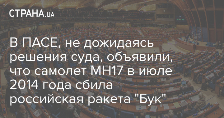 Не дожидаясь решения суда, Парламентская ассамблея Совета Европы (ПАСЕ) заявила, что самолет МН17 в июле 2014 года был сбит российской ракетой "Бук".