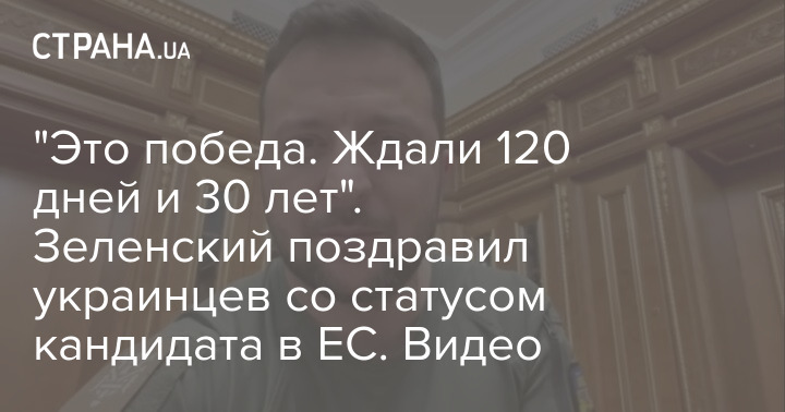"Это победа. Ждали 120 дней и 30 лет". Зеленский поздравил украинцев со статусом кандидата в ЕС. Видео