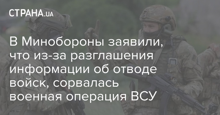В Минобороны заявили, что из-за разглашения информации об отводе войск, сорвалась военная операция ВСУ