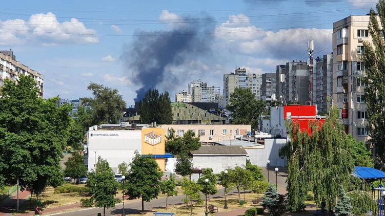 В субботу, 25 июня, на севере Киева произошел масштабный пожар. Клубы черного дыма видны из Оболони и с Троещины. Пламя разгорается из-за сильного ветра.
