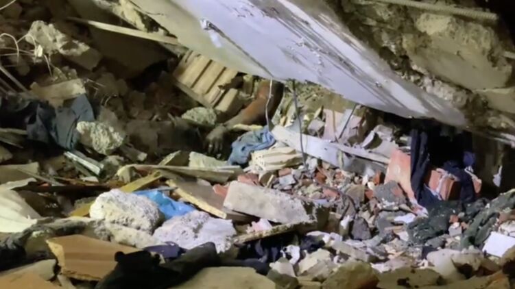 Появилось видео, как спасатели вытаскивают тело погибшего мужчины из-под завалов дома в Шевченковском районе Киева, по которому сегодня утром попала российская ракета.