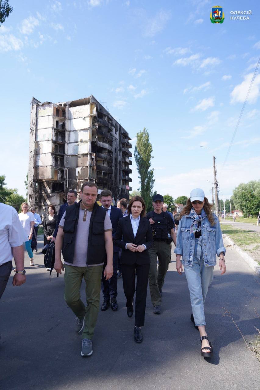 13.02 Президент Молдовы Майя Санду, которая сегодня прибыла с визитом в Украину, уже побывала в Бородянке, Буче и Ирпене под Киевом, сообщил глава Киевской ОВА Алексей Кулеба в Facebook.