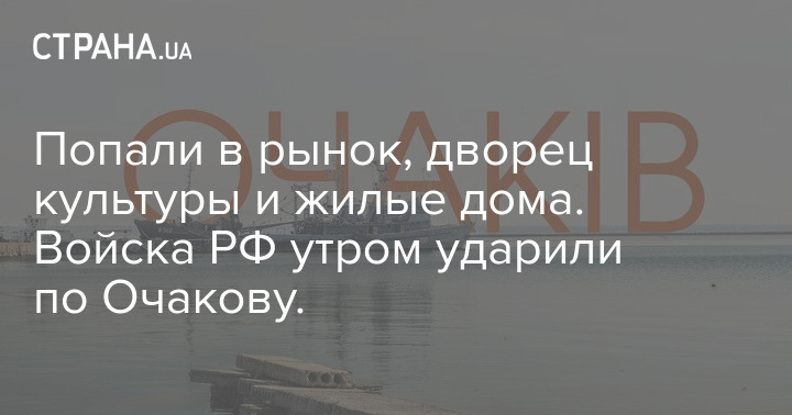 Сегодня с 4:00 утра обстрелу подвергся город Очаков в Николаевской области. Попадания пришлись по территории городского рынка, по зданию дворца культуры, в частный сектор, а также в два жилых здания (прямое попадание).