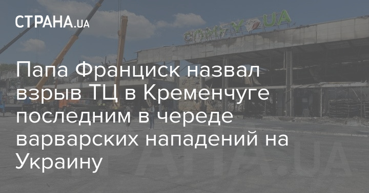Папа Римский Франциск, который сообщал иезуитам, что вторжение России в Украину могло быть спровоцировано, назвал взрыв торгового центра в Кременчуге последним в череде "варварских нападений" на Украину.