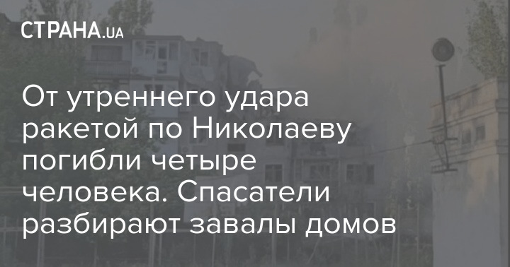 В Николаеве спасатели продолжают разбирать завалы пятиэтажки, куда сегодня утром попала российская ракета. Мэр города Александр Сенкевич сообщил, что число раненных увеличилось до 5, погибли в результате удара 4 человека.