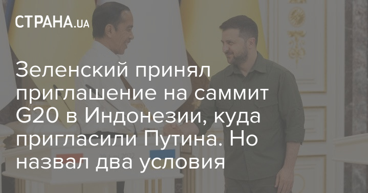Зеленский принял приглашение на саммит G20 в Индонезии, куда пригласили Путина. Но назвал два условия