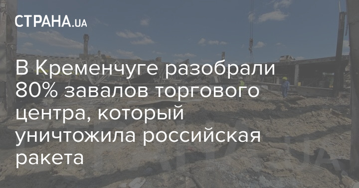 По данным на утро 30 июня в Кременчуге разобрали 80% завалов торгового центра, куда 27 июня попала российская ракета и убила более 20 мирных жителей.