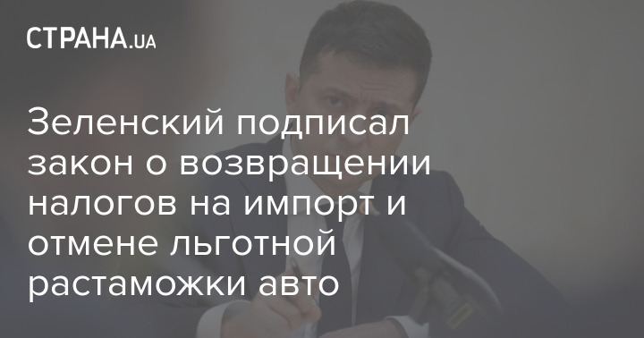 Зеленский подписал закон о возвращении налогов на импорт и отмене льготной растаможки авто