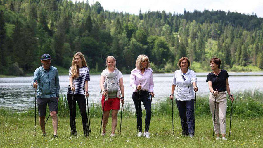 Жены и мужья лидеров G7 под руководством жены Шольца учились скандинавской ходьбе