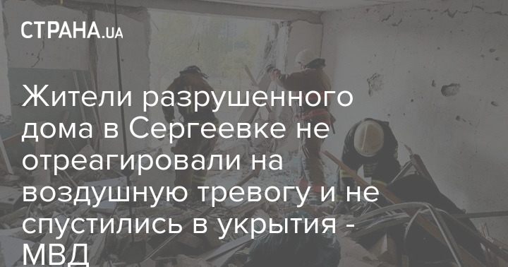Жители разрушенного дома в Сергеевке не отреагировали на воздушную тревогу и не спустились в укрытия - МВД