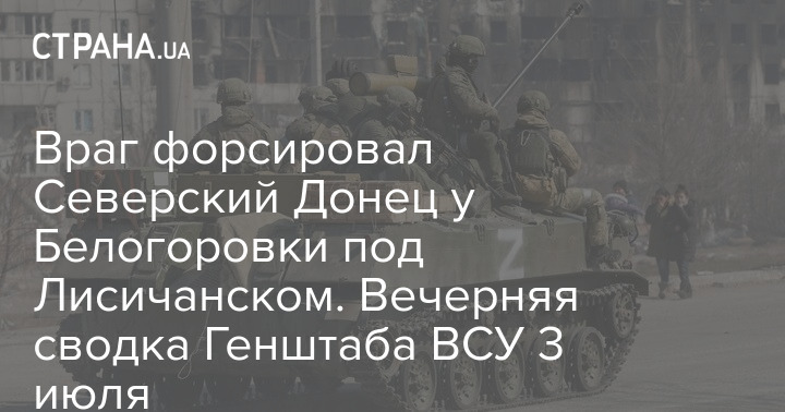 В воскресенье вечером, 3 июля, в Генеральном штабе ВСУ сообщили о форсировании Северского Донца российскими оккупантами и захвате Золотаревки. Об этом говорится в вечерней сводке силового ведомства.