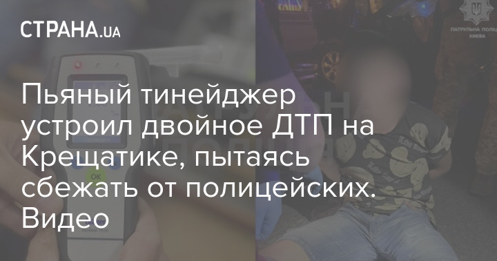 Пьяный тинейджер устроил двойное ДТП на Крещатике, пытаясь сбежать от полицейских. Видео