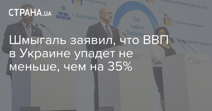 Падение ВВП Украины в 2022 году будет не менее 35%. Об этом сказал премьер-министр Украины Денис Шмыгаль на итоговой пресс-конференции в Лугано.