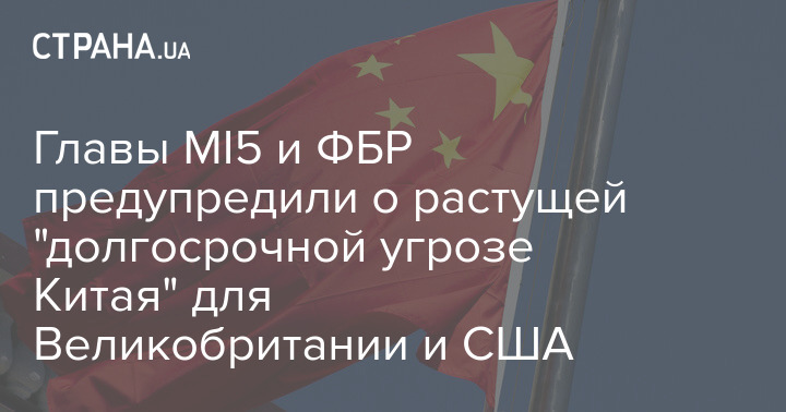Главы британской службы контрразведки MI5 и американского ФБР предупредили о растущей "долгосрочной угрозе Китая" для интересов Великобритании и США.