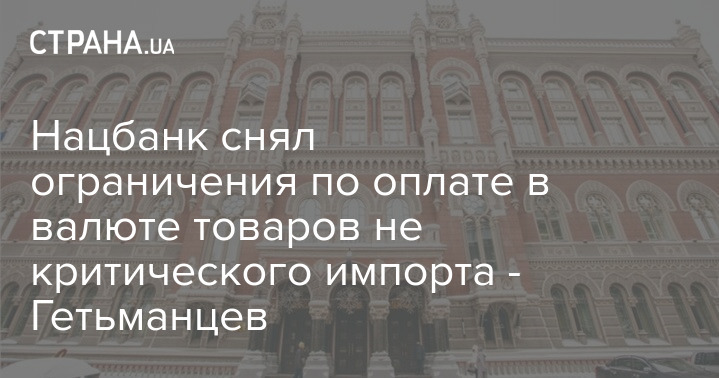 Гетьманцев сообщил о снятии ограничений по оплате в валюте товаров не критического импорта