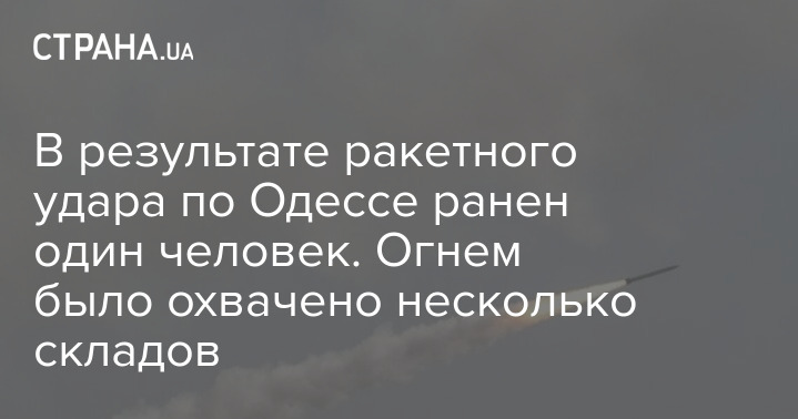 В результате ракетного удара по Одессе ранен один человек. Огнем было охвачено несколько складов