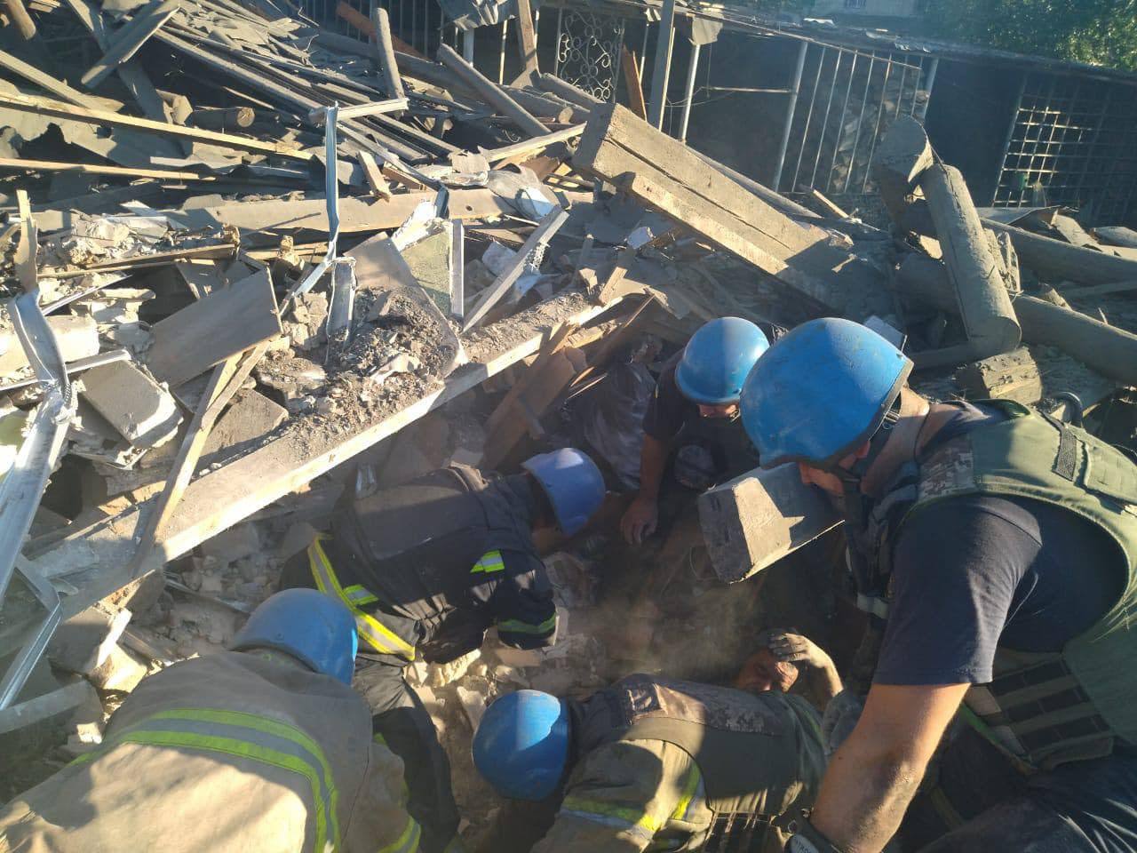 Снаряд попал в двухэтажное здание, в котором находились люди.