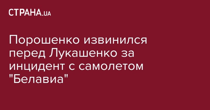 "Петр Порошенко принес извинения за инцидент с гражданским самолетом авиакомпании "Белавиа" и проинформировал президента Беларуси, что виновные наказаны", - сообщили в пресс-службе белорусского лидера.