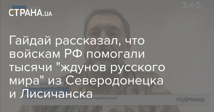Глава Луганской ОВА Сергей Гайдай заявил, что тысячи жителей Северодонецка и Лисичанска помогали российским войскам и сообщали информацию о месторасположении ВСУ.