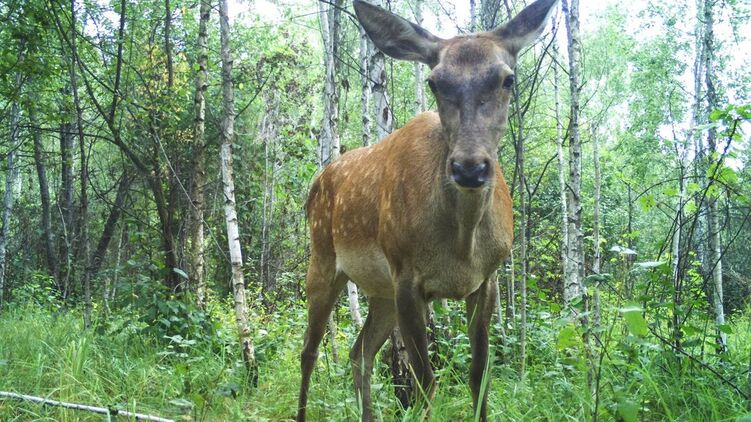 Чернобыльский радиационно-экологический биосферный заповедник опубликовал снимок самки благородного оленя, попавшей в объектив фотоловушки.