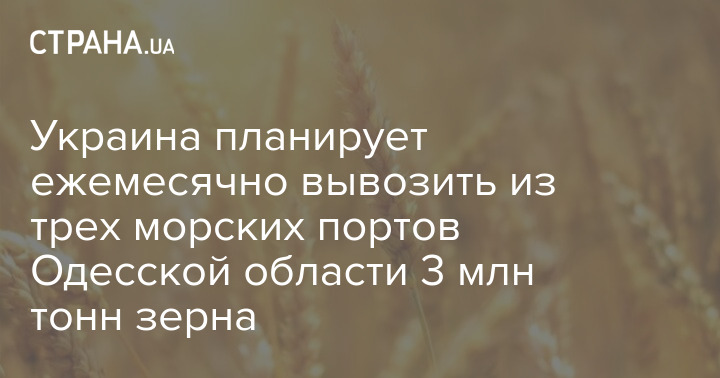 Каждый месяц из морских портов будет отправляться три миллиона тонн украинского зерна