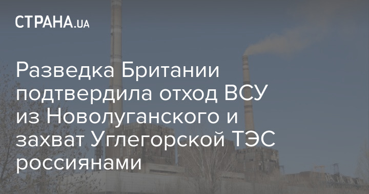 Разведка Великобритании подтверждает захват Углегорской ТЭС россиянами. Также подтверждается отход ВСУ из Новолуганского вблизи этой электростанции.