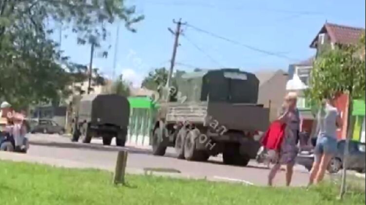 В захваченном Геническе наблюдают перемещение колонны техники РФ в сторону аннексированного Крыма. Видео