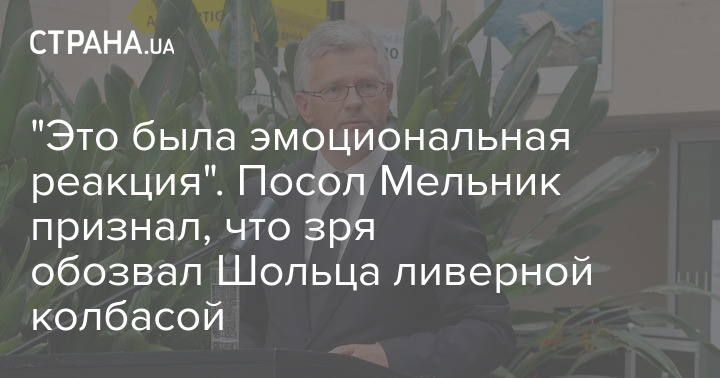 "Да, наверное, это было неуместно, это была эмоциональная реакция", — сказал Мельник в интервью немецкой газете Zeit, отвечая на вопрос, было ли ошибкой называть Шольца "обиженной ливерной колбасой".