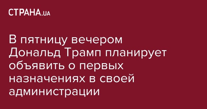 Новоизбранный президент США Дональд Трамп планирует уже в пятницу, 11 ноября, вечером сделать первые назначения в администрации. Об этом он написал в своем микроблоге Twitter.