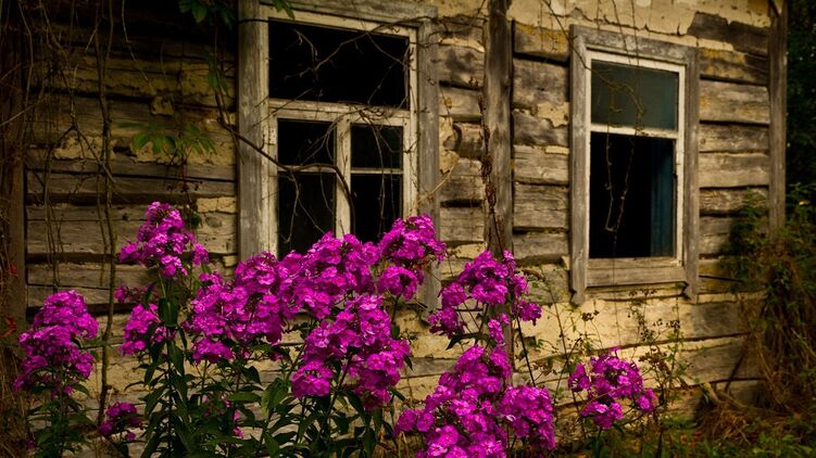Чернобыльский радиационно-экологический биосферный заповедник опубликовал фото заброшенного дома в зоне отчуждения ЧАЭС, у которого растут флоксы.