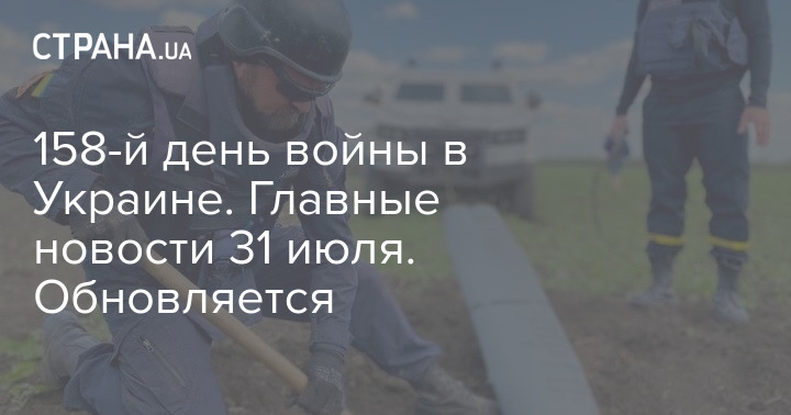 В воскресенье, 31 июля, в Украине идет уже 158-й день войны с Россией.