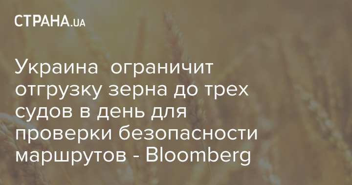 Украина ограничит отгрузку зерна до трех судов в день на ближайшие две недели в связи с вопросами безопасности.