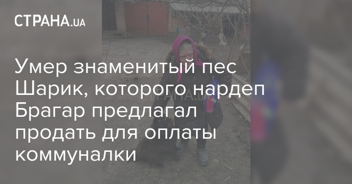 Любовь Павловна Колючая из села Аджамка Кировоградской области, которой депутат фракции "Слуга народа" Евгений Брагар предлагал продать собаку, чтобы оплатить коммуналку, в комментарии "Стране" сообщила, что тот самый знаменитый пёс Шарик умер.
