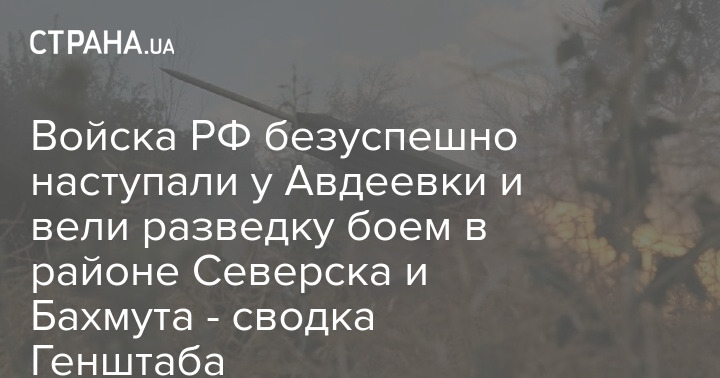 Россияне наступали в районах Авдеевки и Красногоровки, успеха не имели. Также Генштаб сообщает о массированных обстрелах к западу от Донецка.