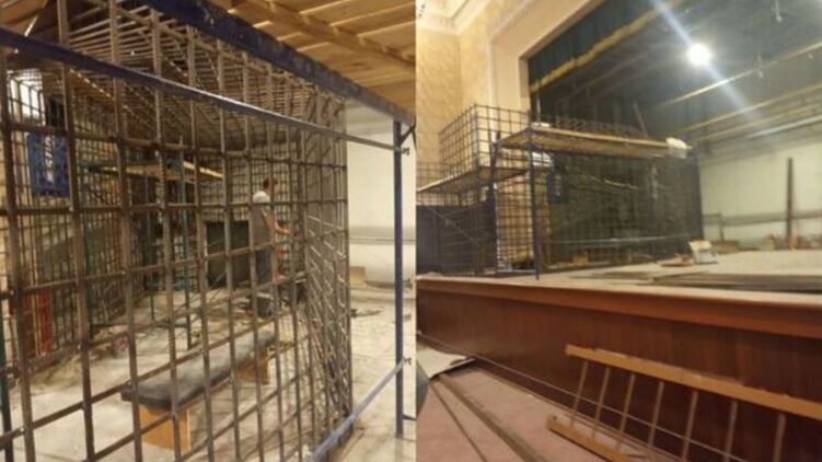 На сцене филармонии в Мариуполе собирают тюремные клетки для "трибунала"