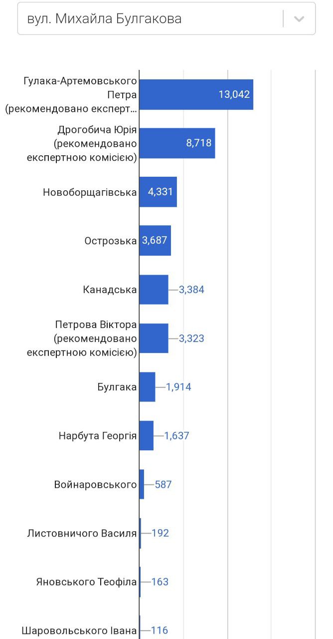 Почва для этого уже подготовлена голосованием в приложении "Киев цифровой". Результаты этого "референдума", который прошел в июне, пока не имплементированы Киевсоветом. Но если это произойдет, то Булгакова в Киеве станет меньше (голосование может пройти до конца августа, как ранее сообщали отдельные депутаты).