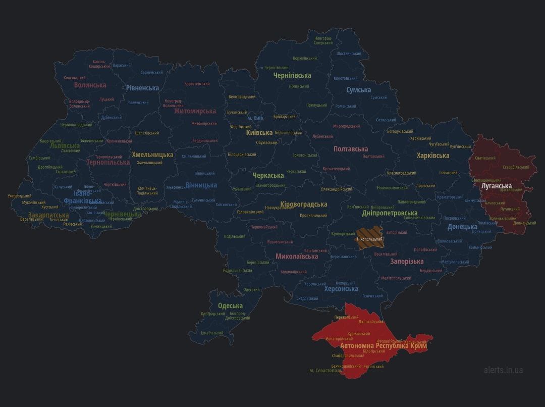 22:59 Карта воздушных тревог Украины показала тревогу в Крыму.