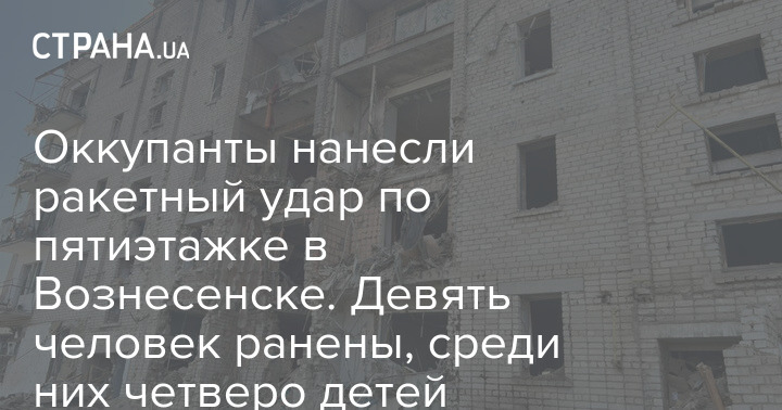 Оккупанты нанесли ракетный удар по пятиэтажке в Вознесенске. Девять человек ранены, среди них четверо детей