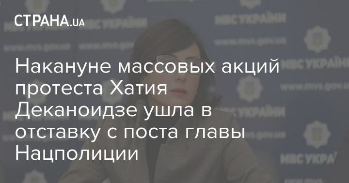 Глава Национальной полиции Хатия Деканоидзе подала в отставку. Об этом сообщает "Обозреватель" со ссылкой на собственные источники в Нацполиции.