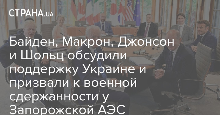 Лидеры США, Франции, Великобритании и Германии  Джо Байден, Эммануэль Макрон, Борис Джонсон и Олаф Шольц во время телефонного разговора обсудили необходимость избегать военных действий у Запорожской АЭС и важность организации визита МАГАТЭ в кратчайшие сроки.