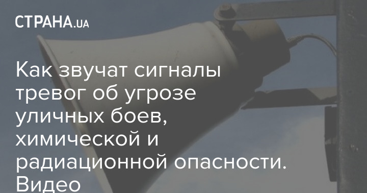 Ведомство на видео показало, как звучит сигнал об угрозе уличных боев, сигнал об артобстреле, сигнал химической опасности, сигнал радиационной опасности, а так же, как звучит сигнал об уже привычной для украинцев воздушной тревоге.