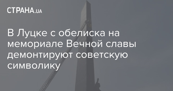 В Луцке с обелиска на мемориале Вечной славы демонтируют советскую символику. Коммунальщики сделали первые резы звезды (которая внутри полая) толщиной примерно от сантиметра до полутора. работы обещают завершить до конца дня.