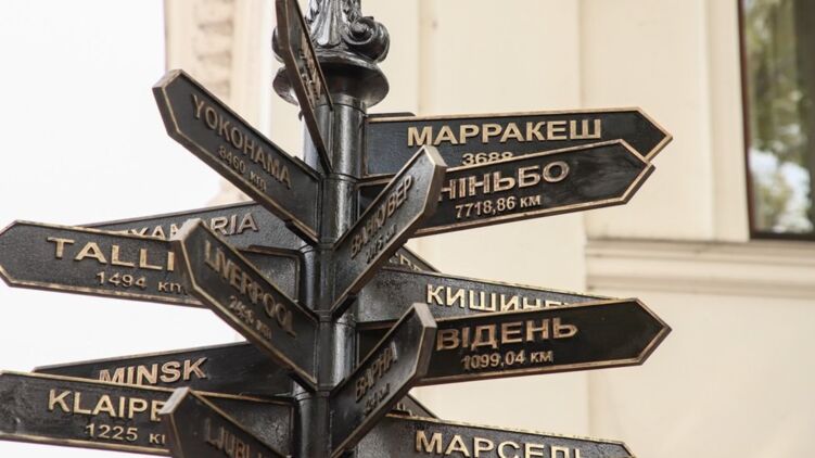 В Одессе собираются убрать указатели Минска и Бреста с находящегося на Думской площади памятного знака городам-побратимам.